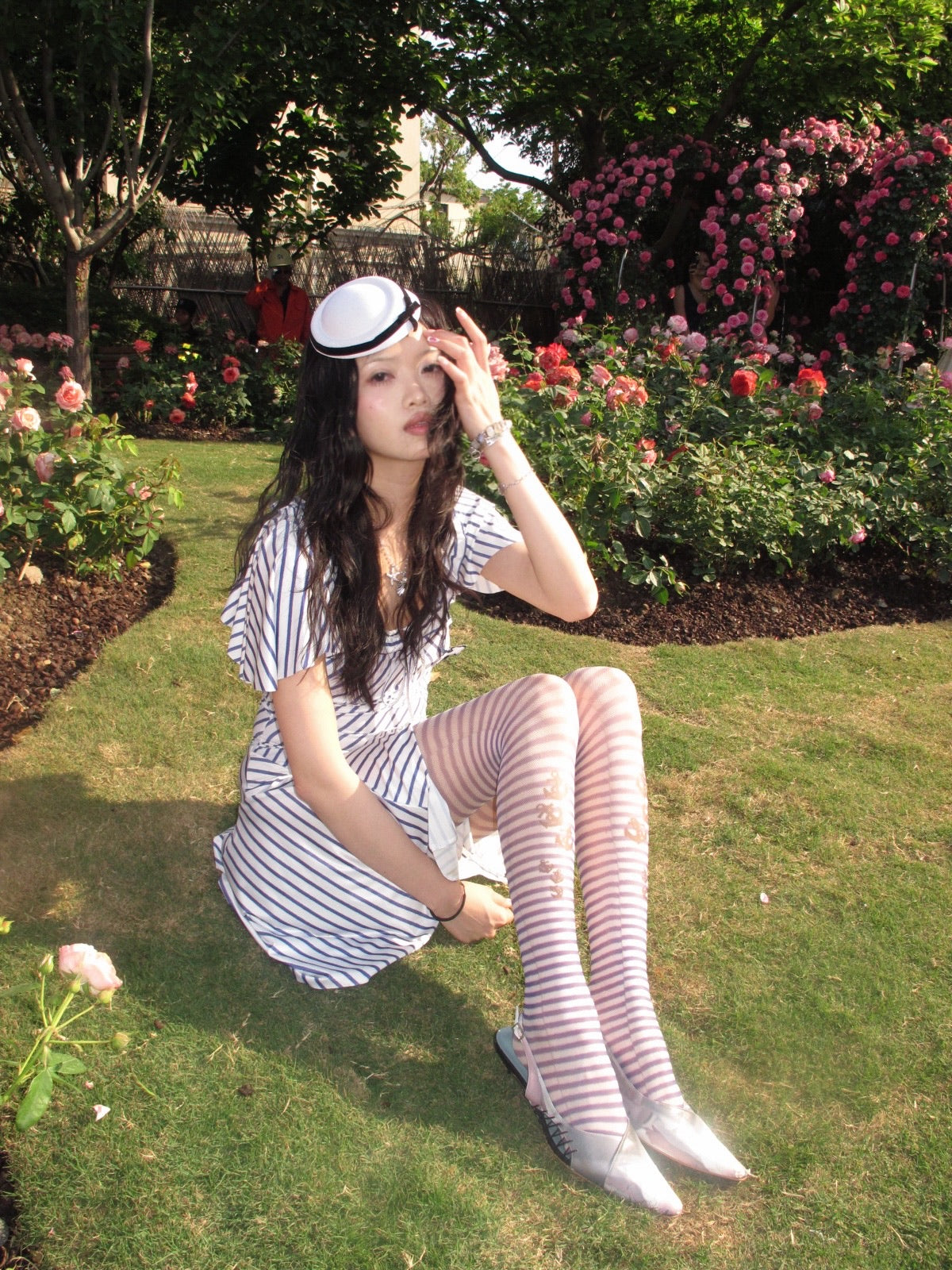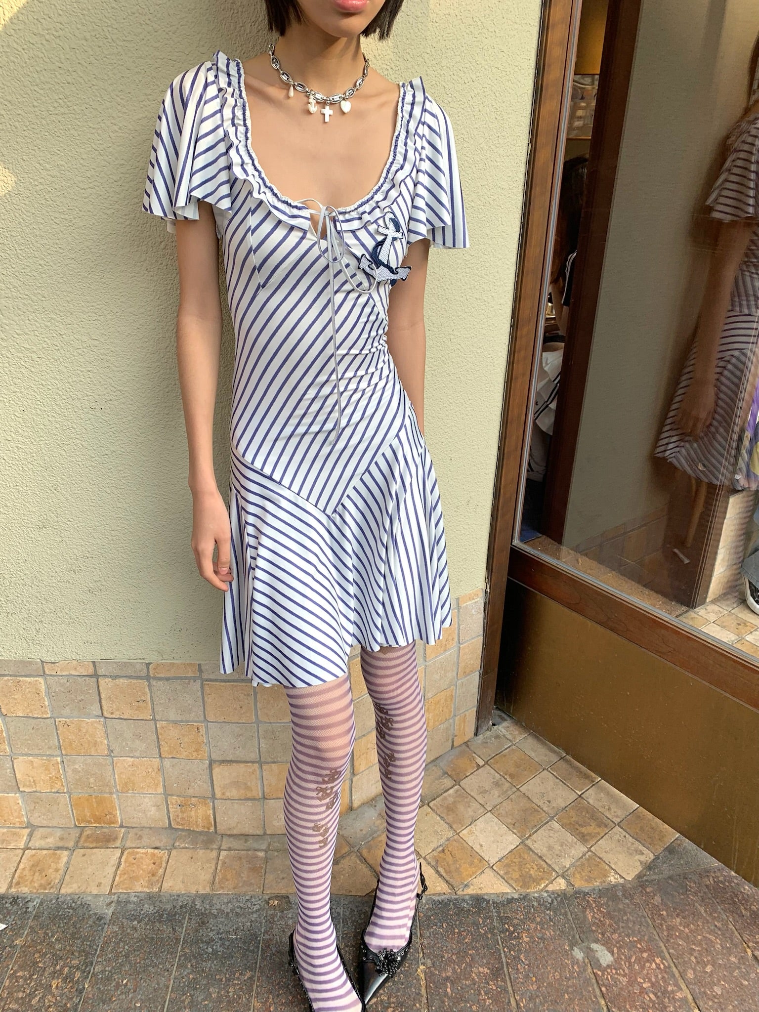 Navy style sailing style playful wide sleeves and large skirt hem elasticated dress