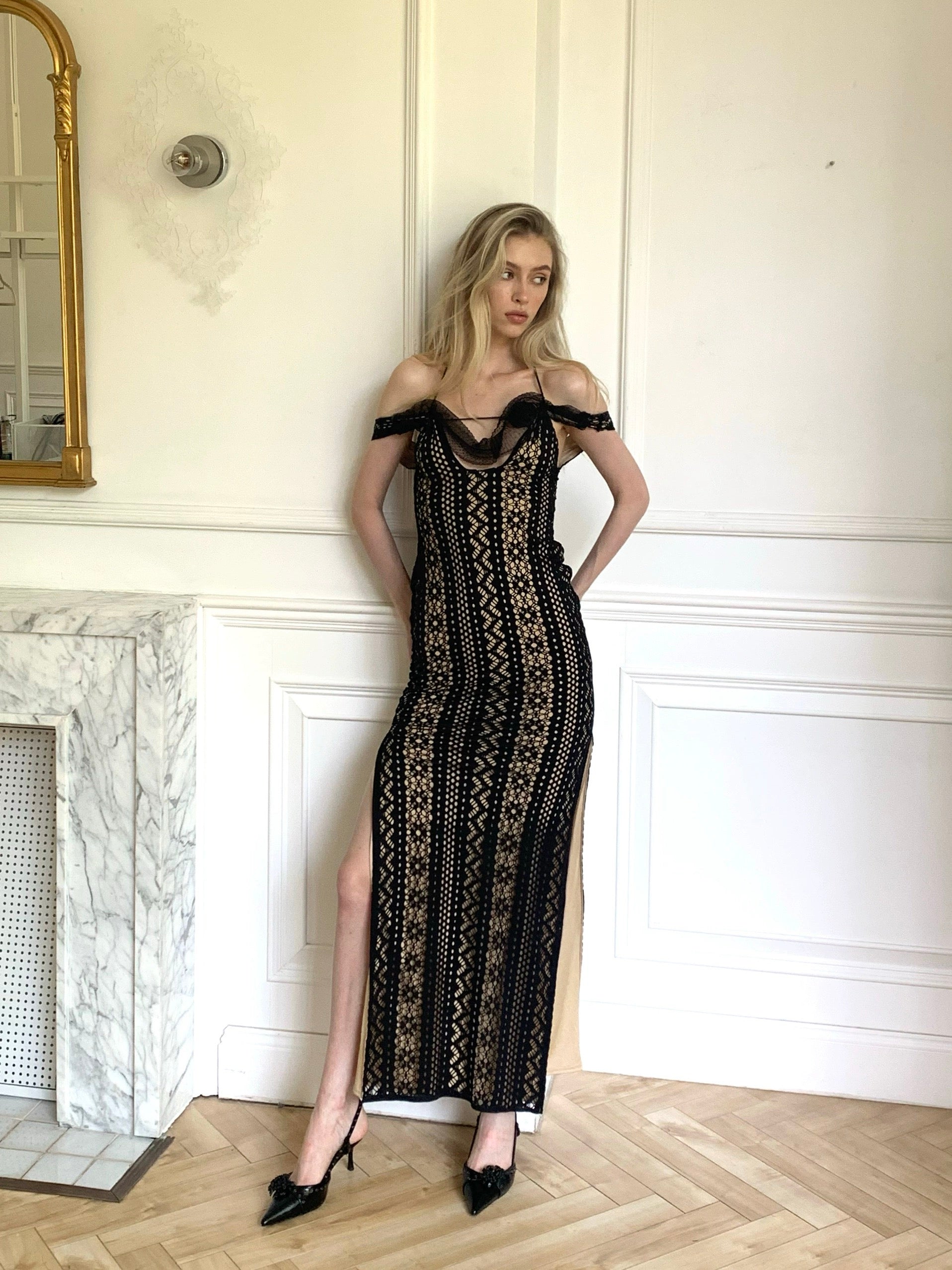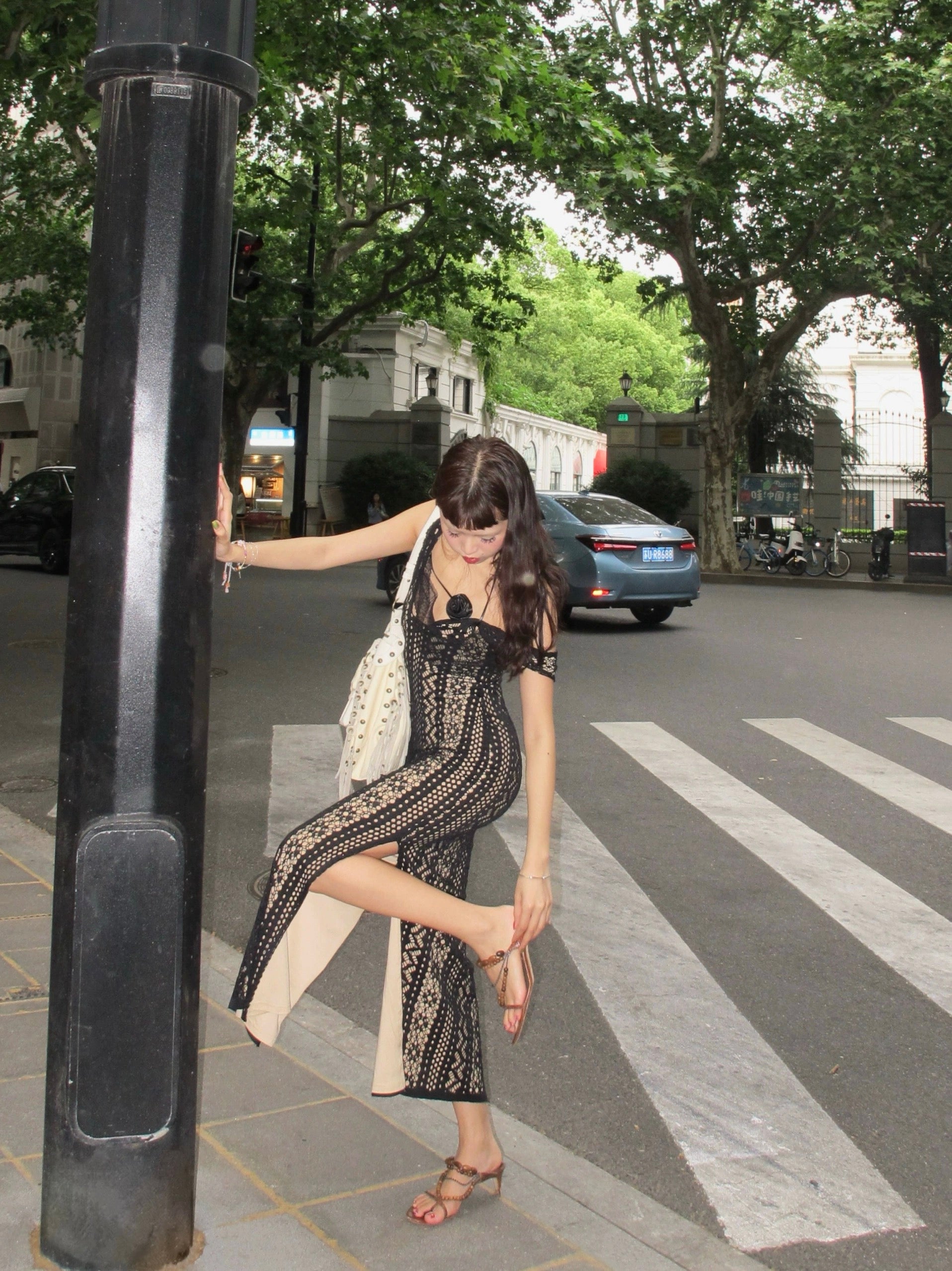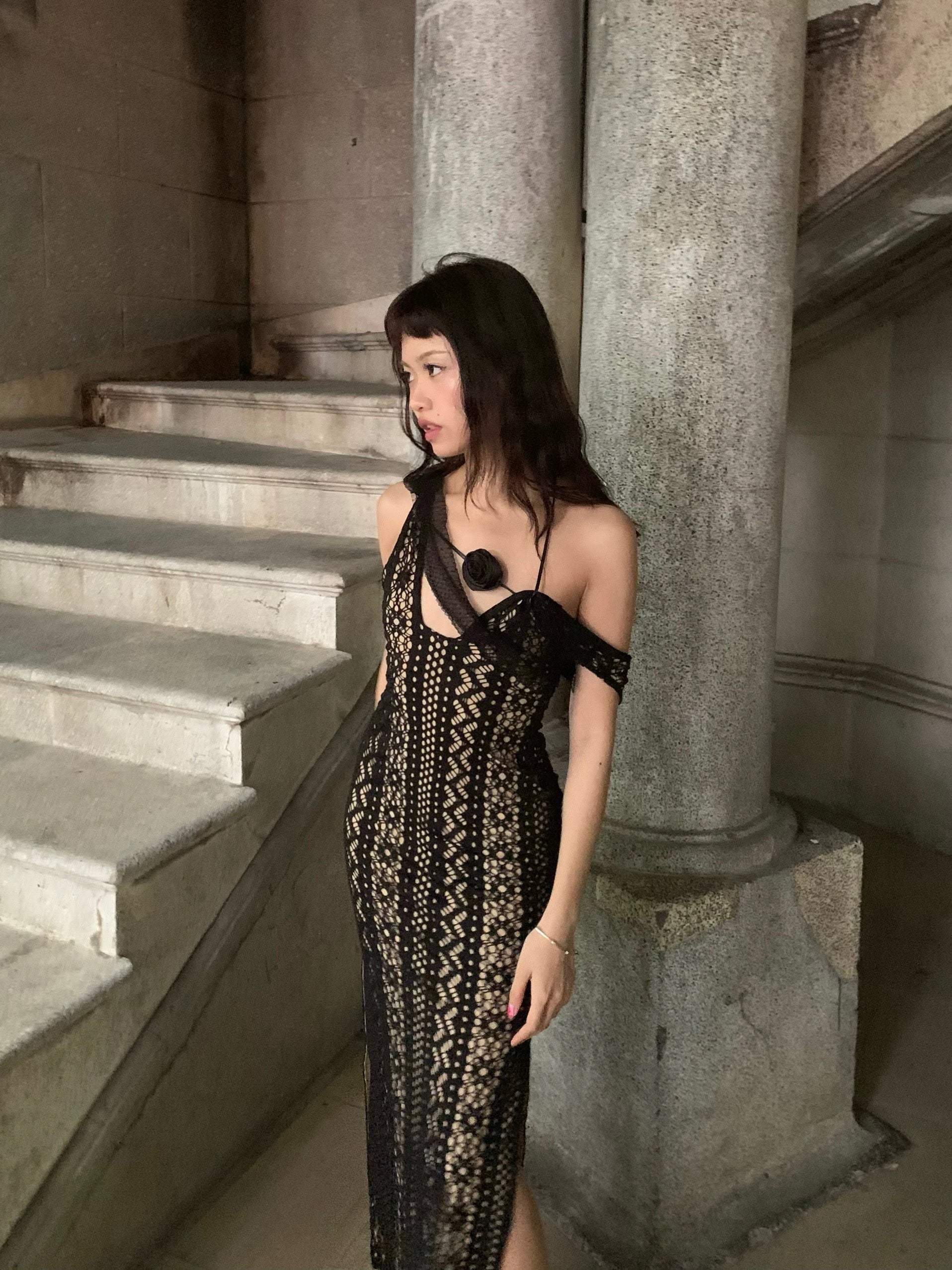 The fabric is elastic, comfortable and skin-friendly.You can tie it up with the black rose chocket (that is included in the dress) like the first picture or you can wear it normally like the last picture.
