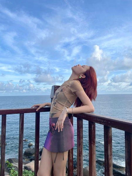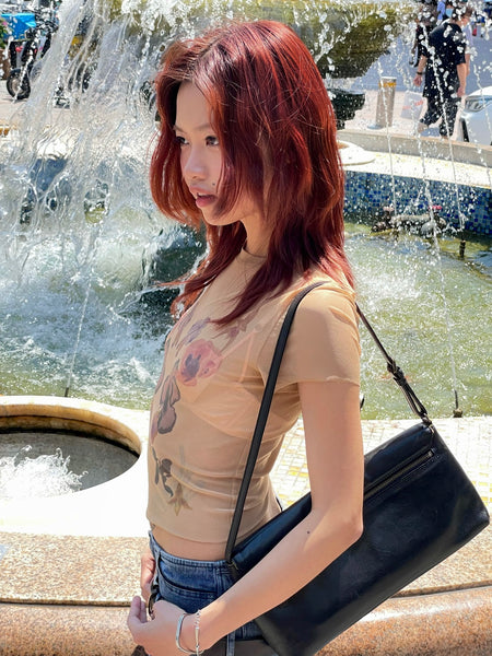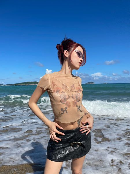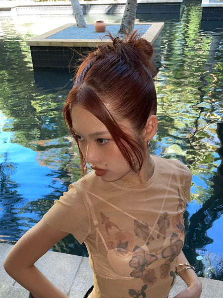 Floral Print Mesh T-Shirt