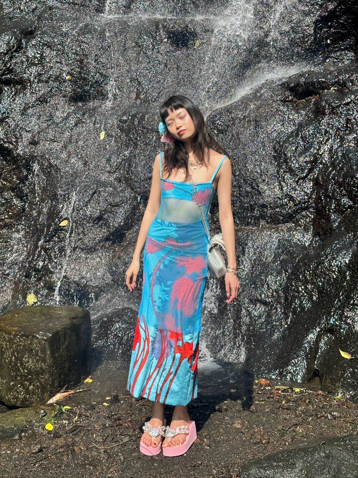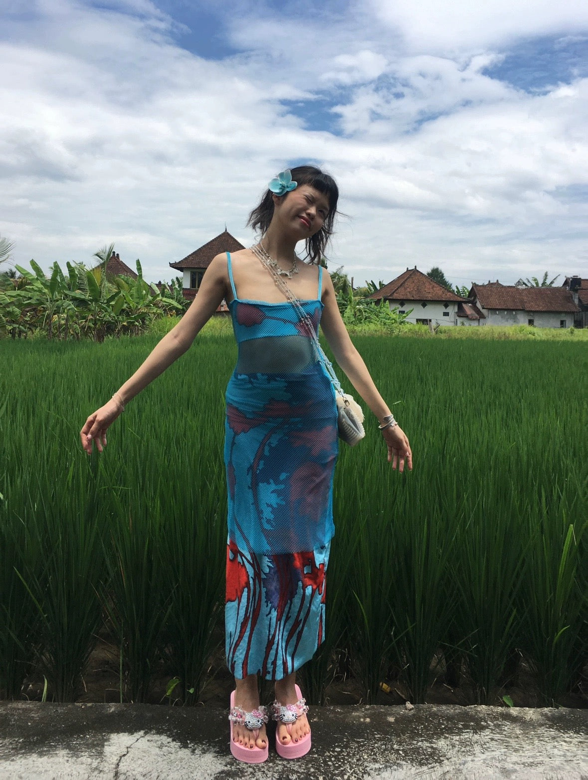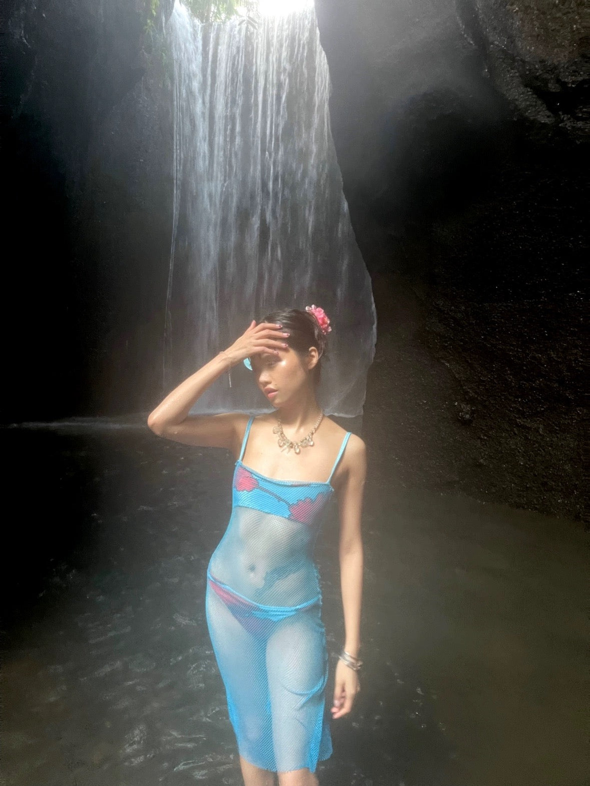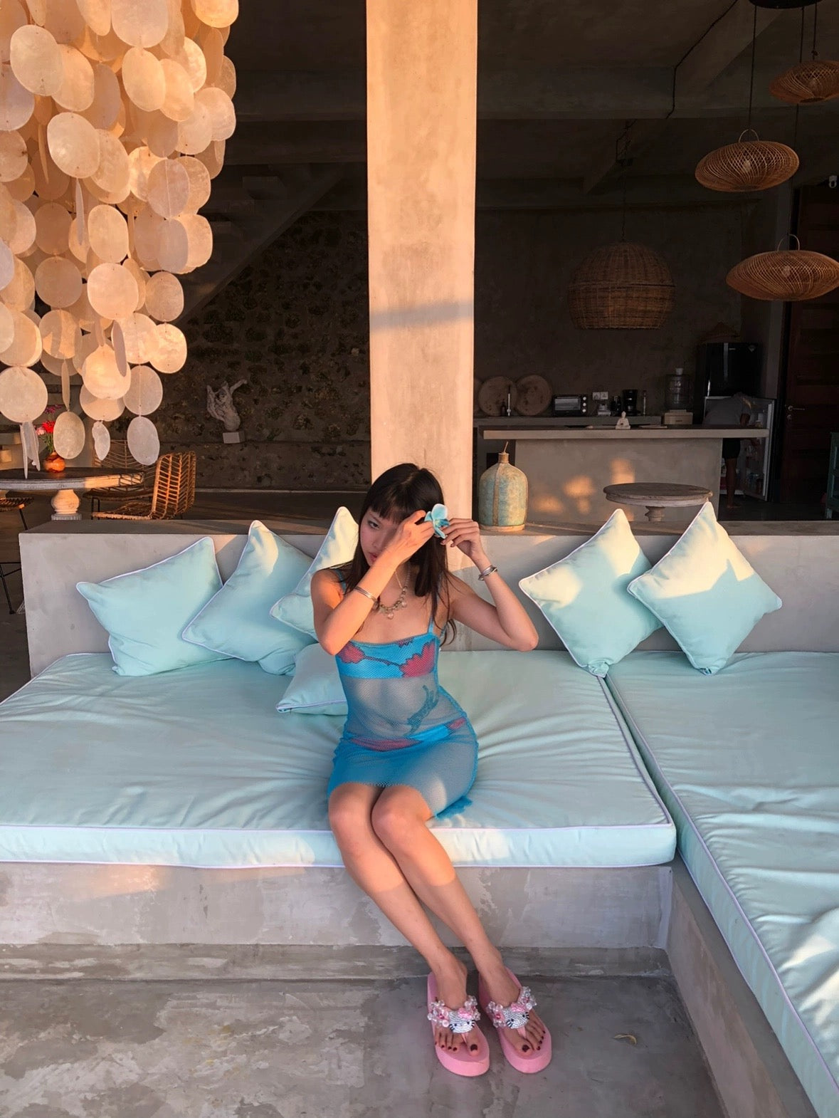 This time, the bikini top was made into a see-through dress for a slim and special fit