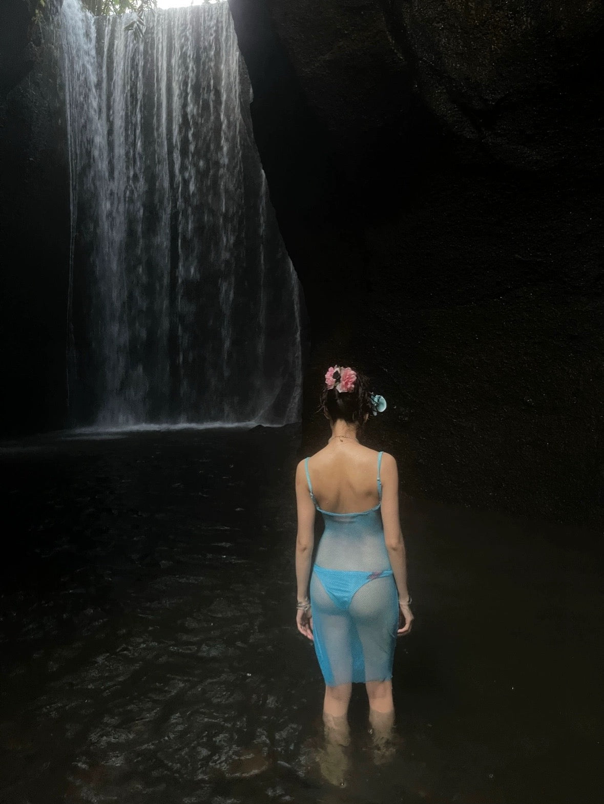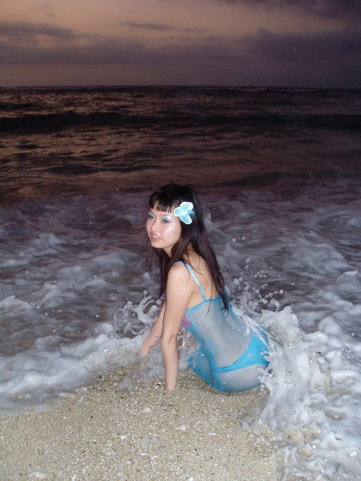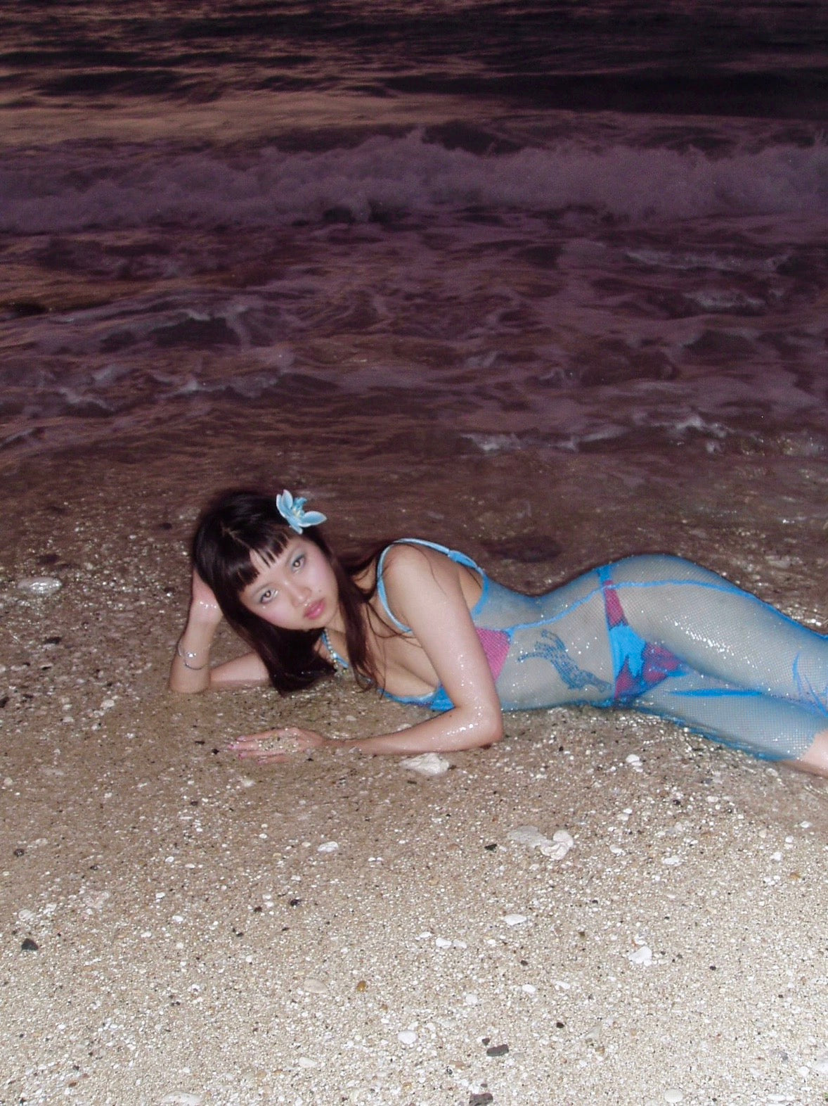 This time, the bikini top was made into a see-through dress for a slim and special fit
