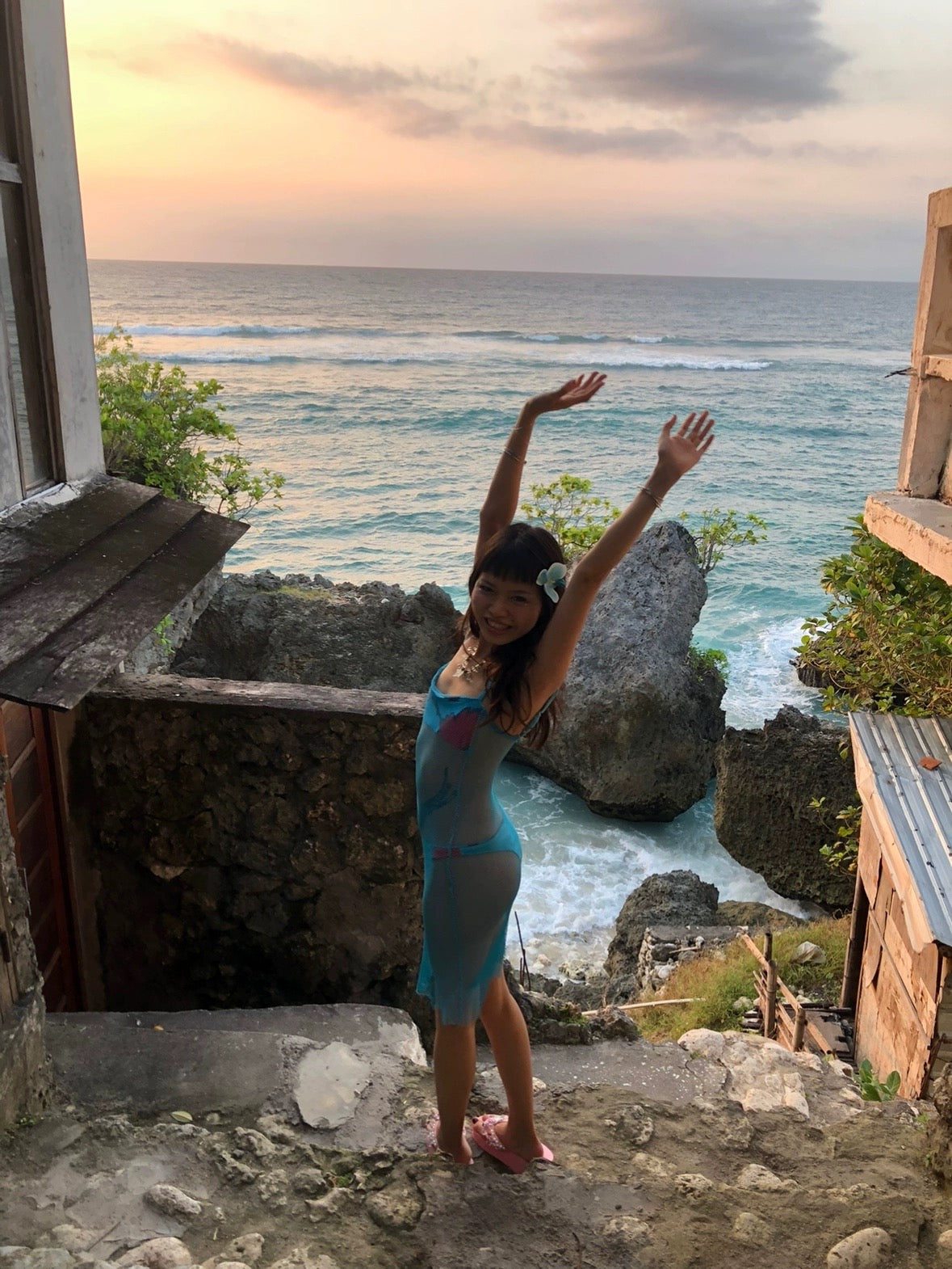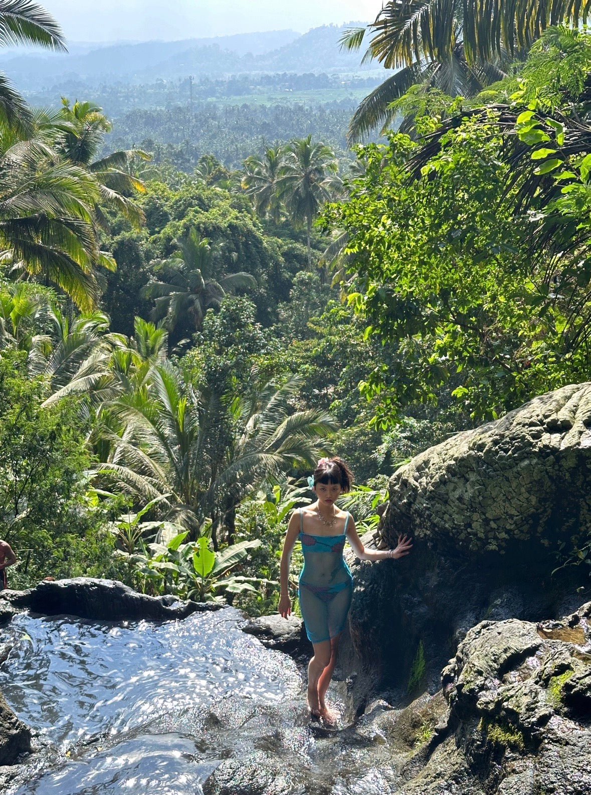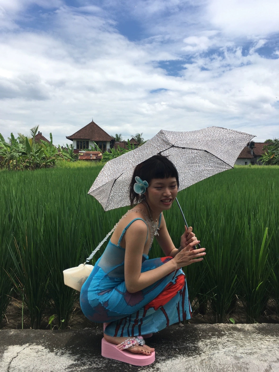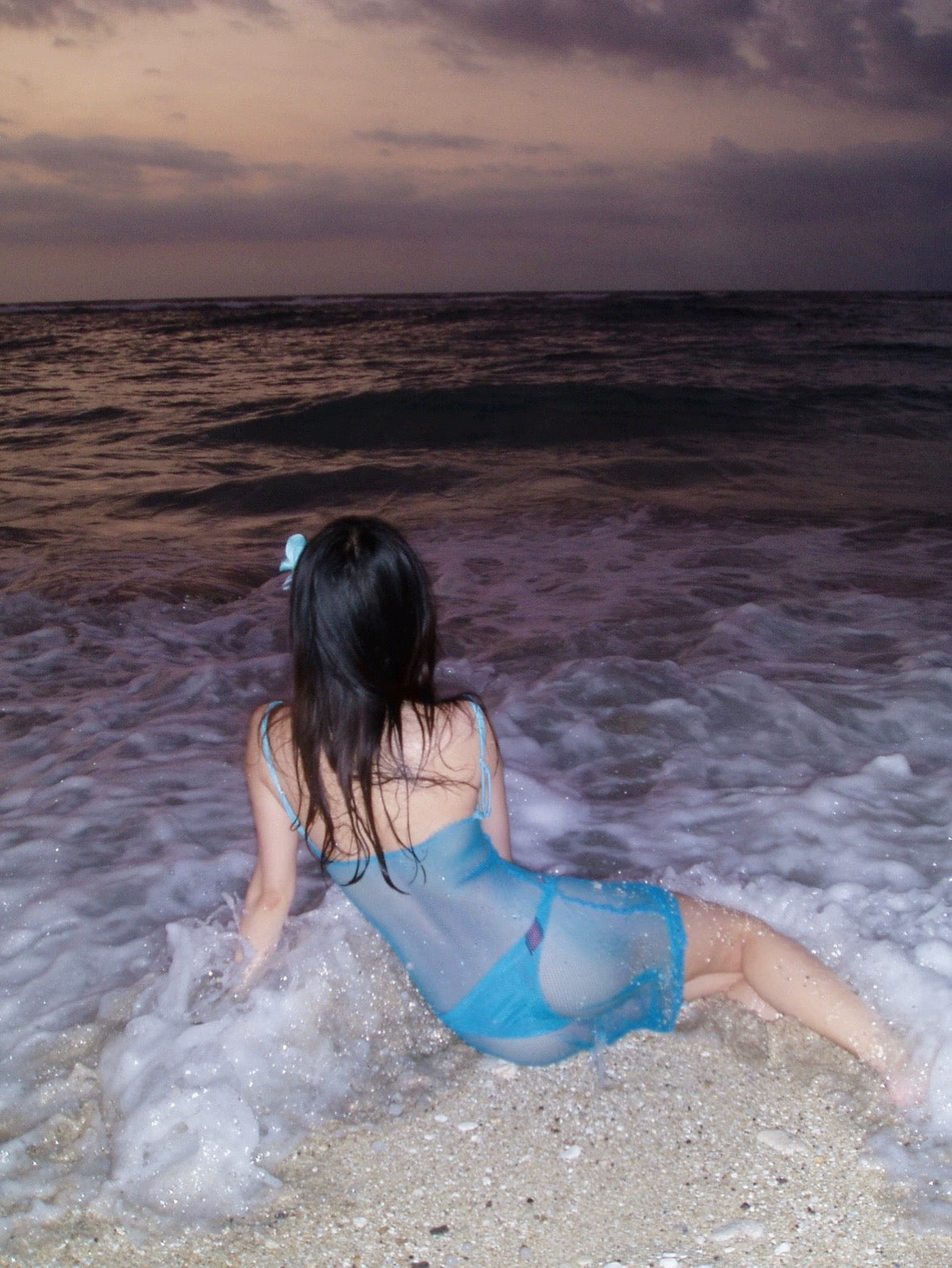 This time, the bikini top was made into a see-through dress for a slim and special fit