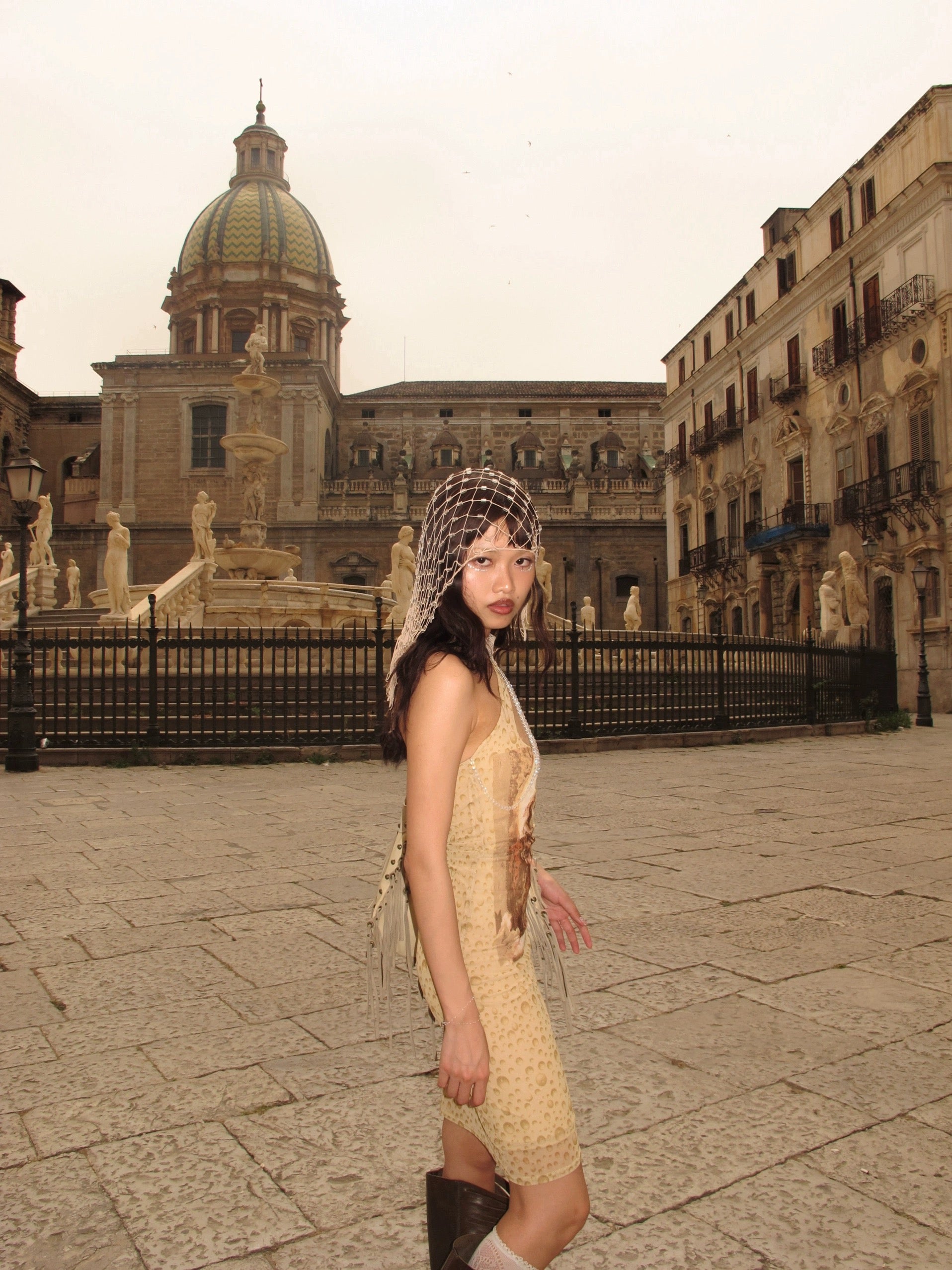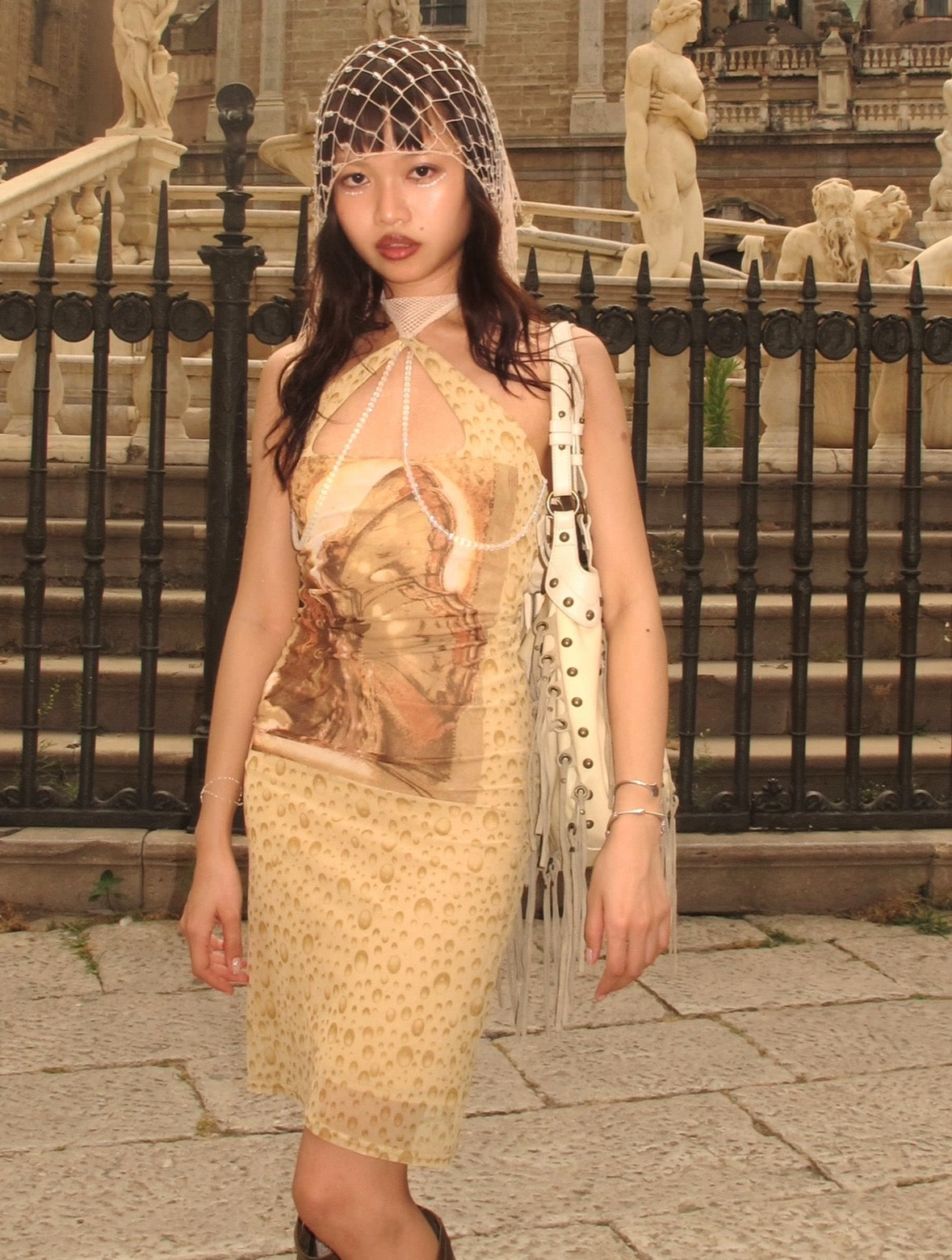 Fairy print mesh slim dress