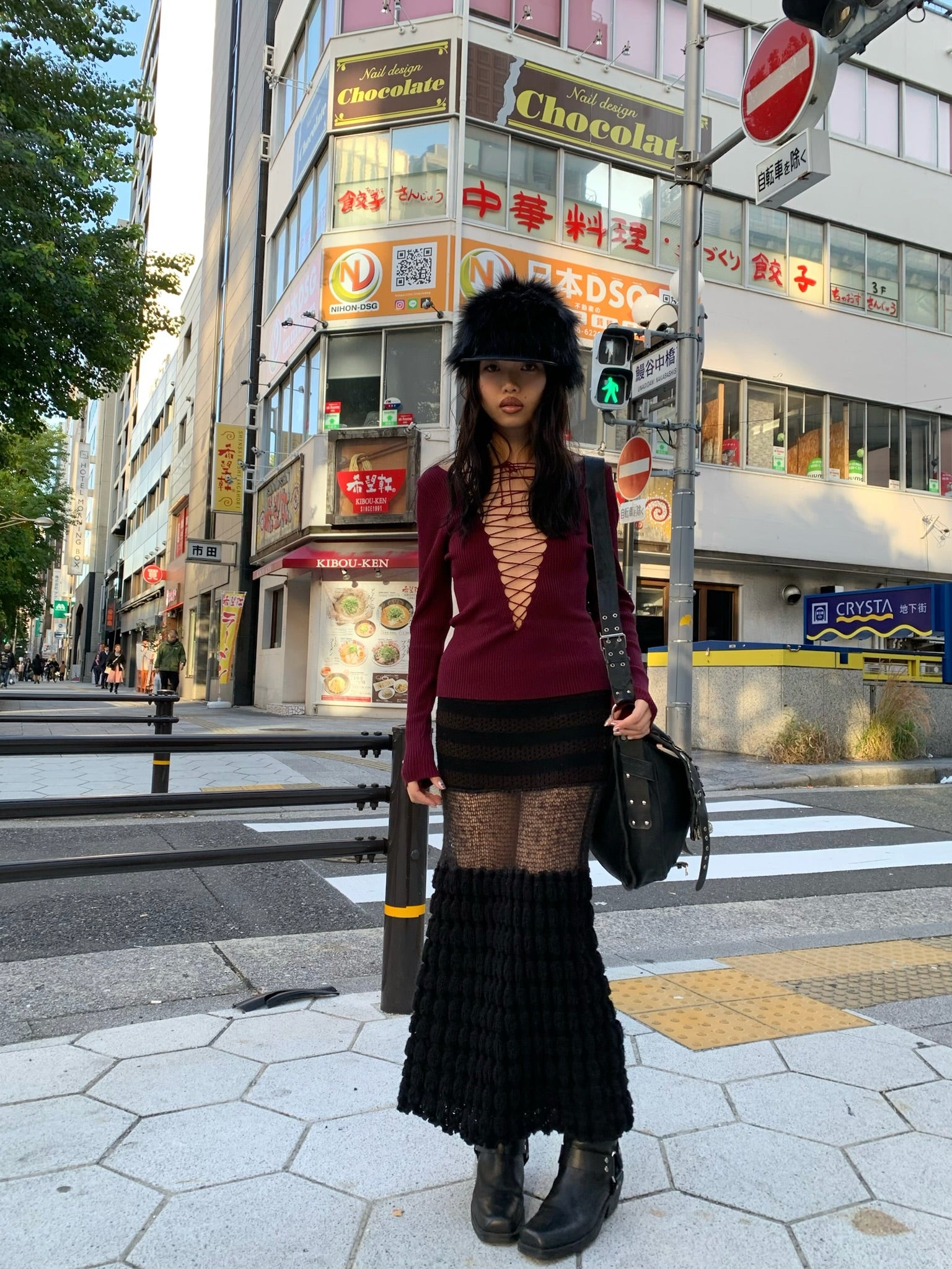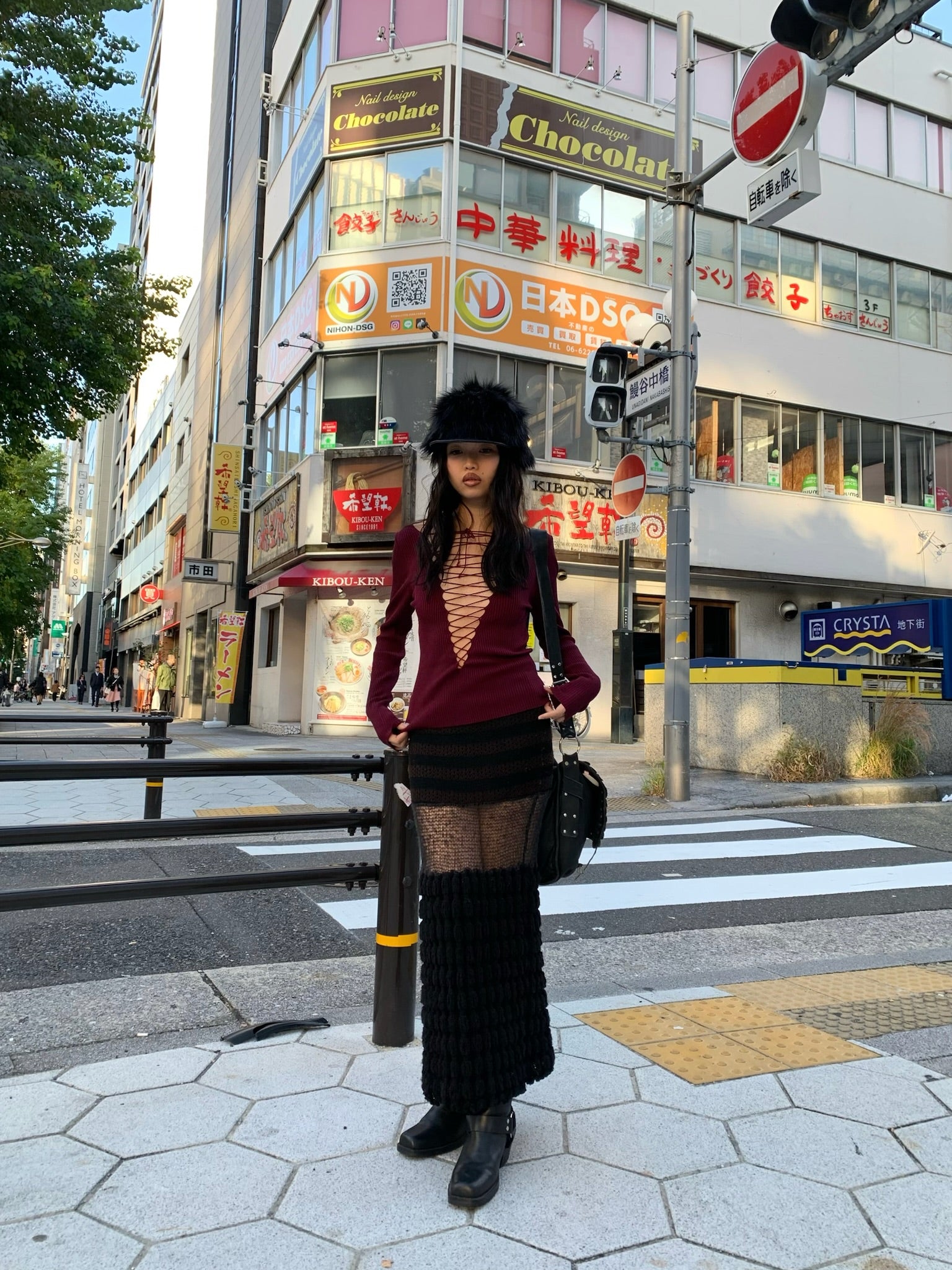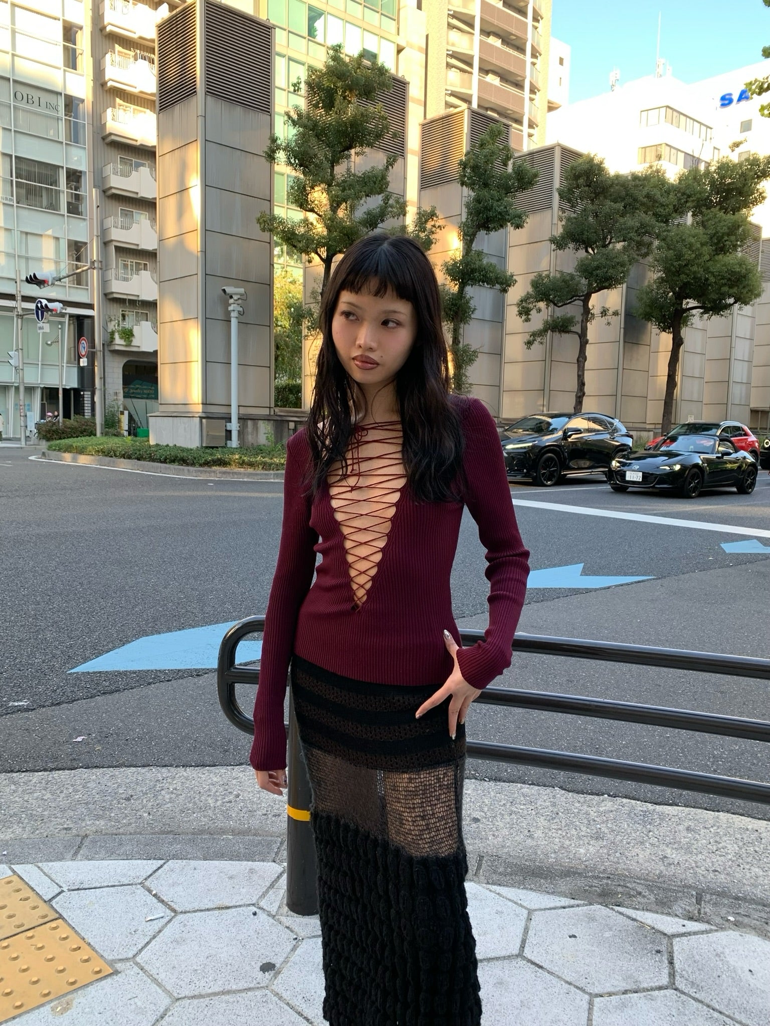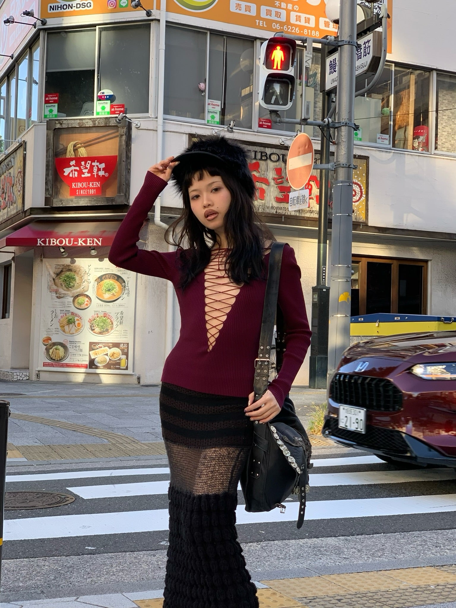 Hottie's autumn/winter sexy insides with lace knit Burgundy slimming top