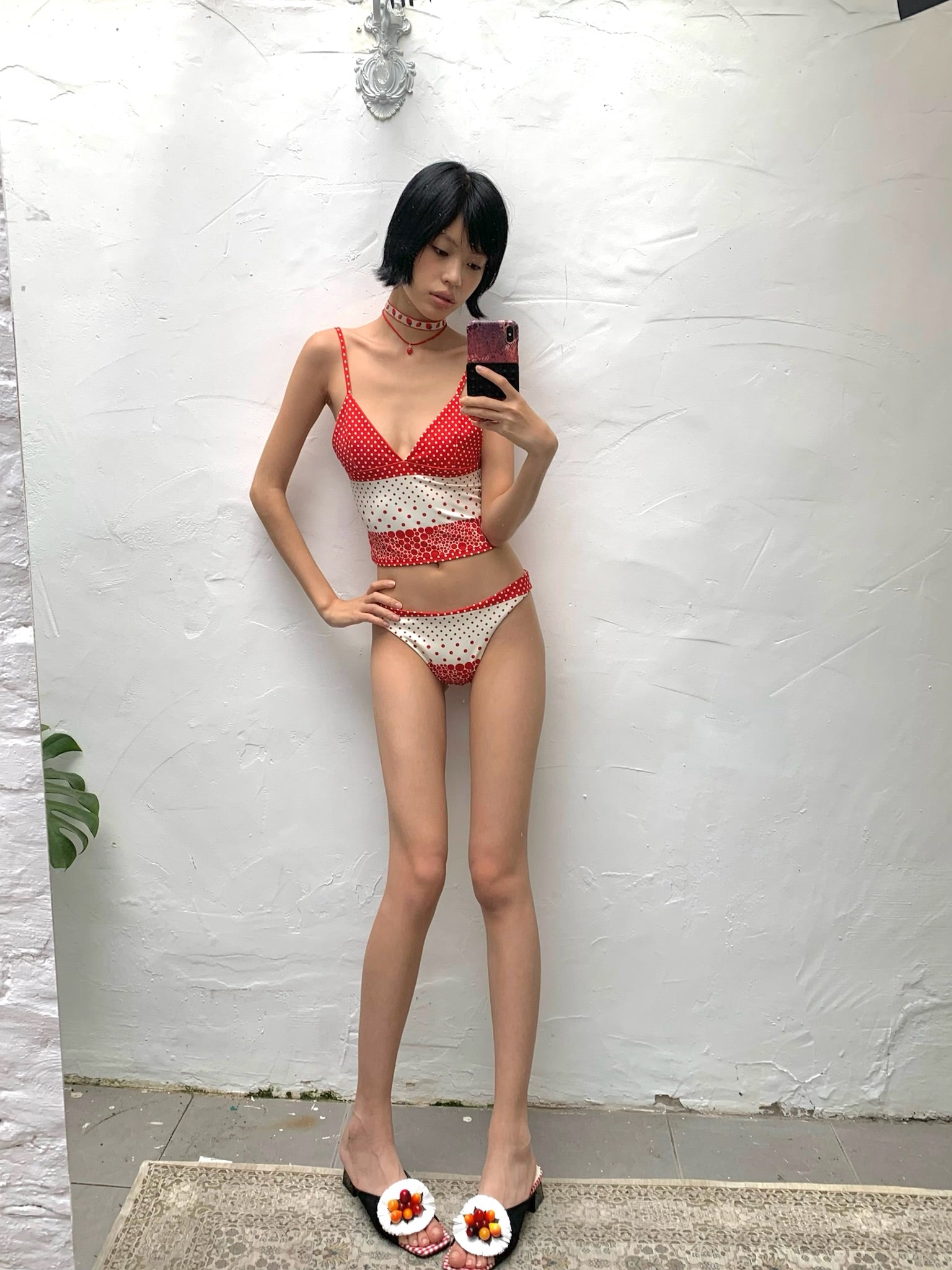 Orange soda polka dot printed three-piece swimsuit bikini - can be purchased separately