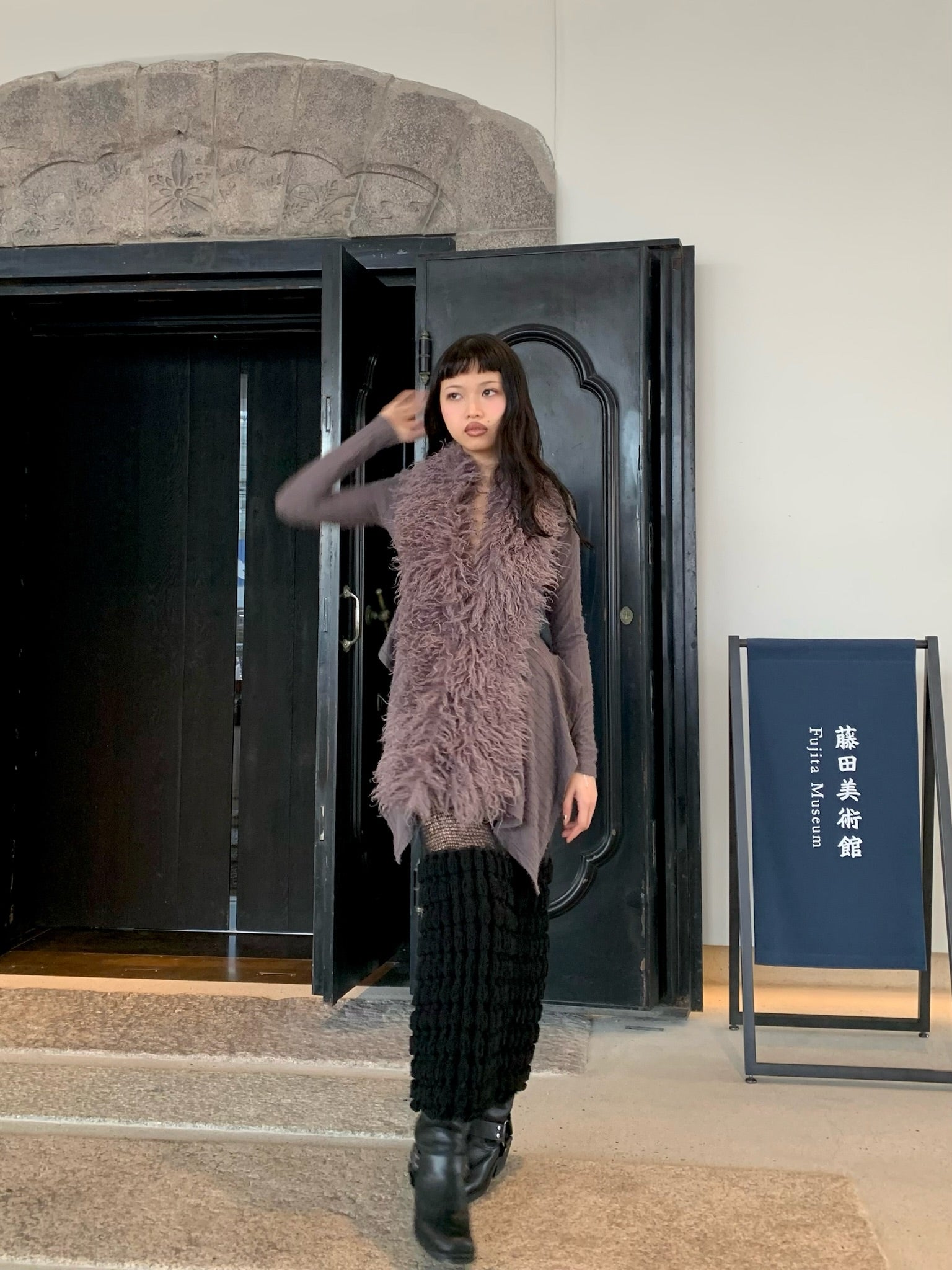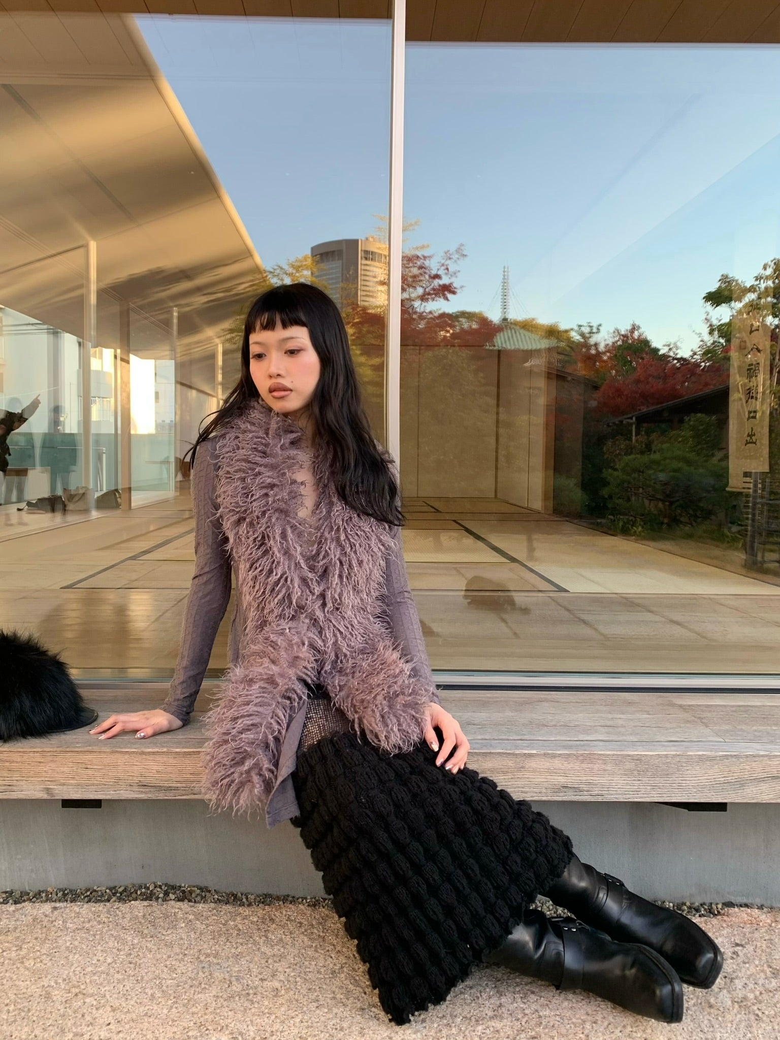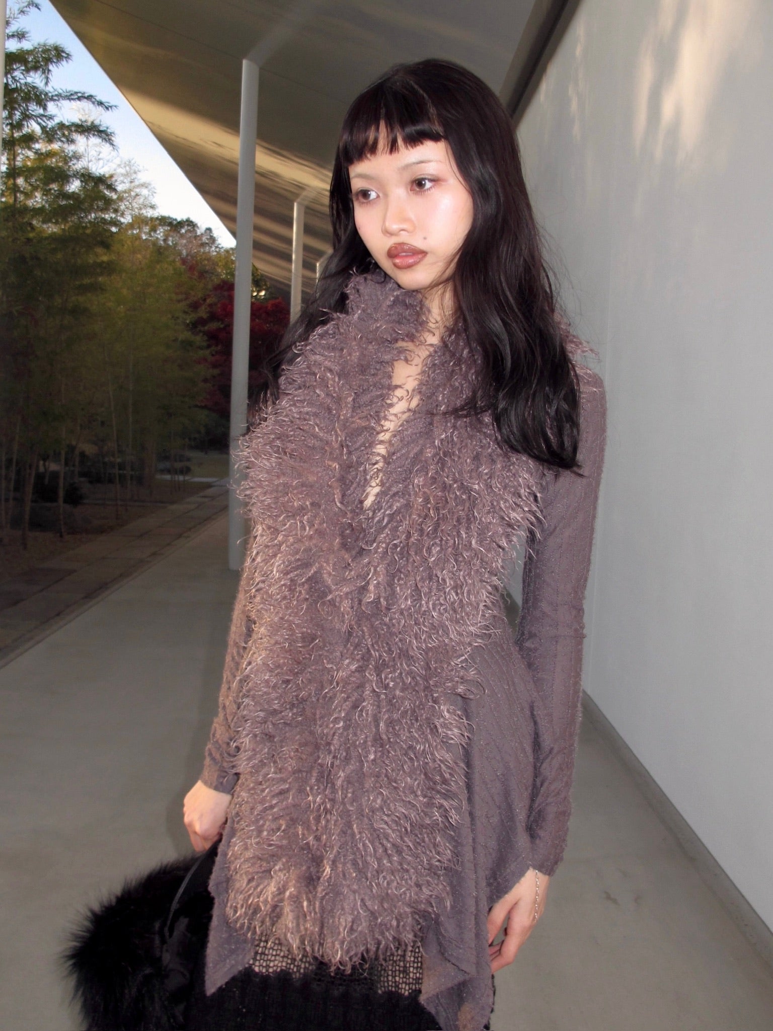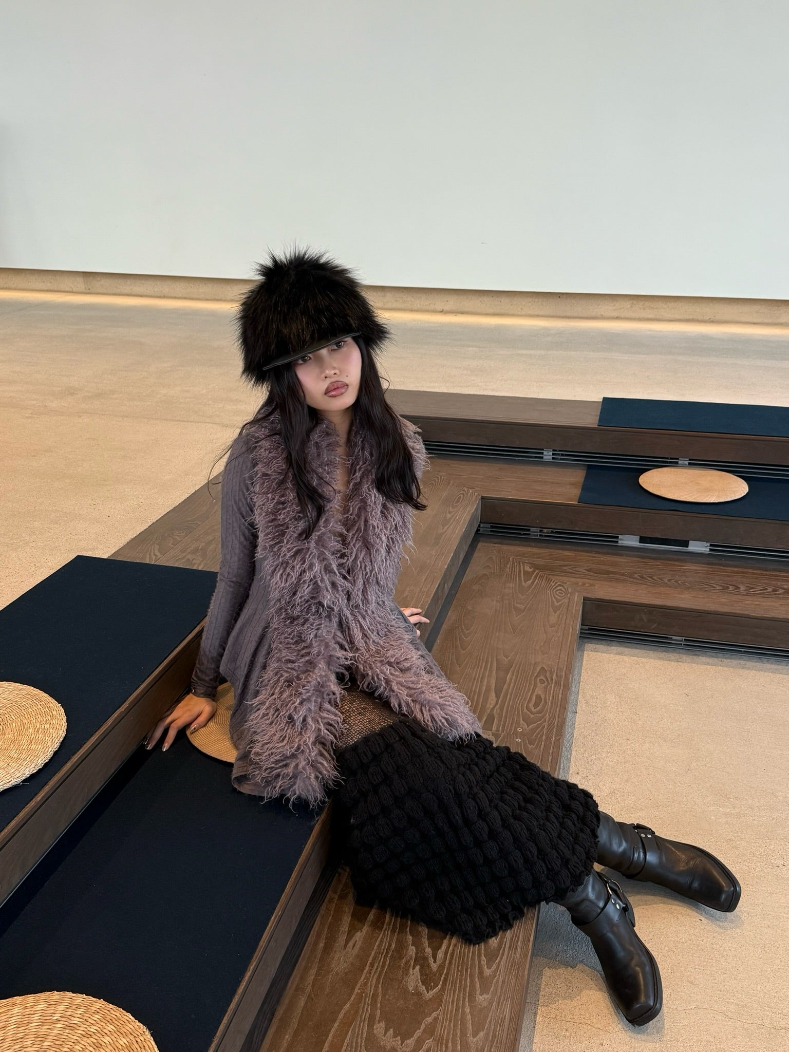 Purple grey fur( long at the front and short at the back ) slimming knit long sleeve cardigan/jacket/top