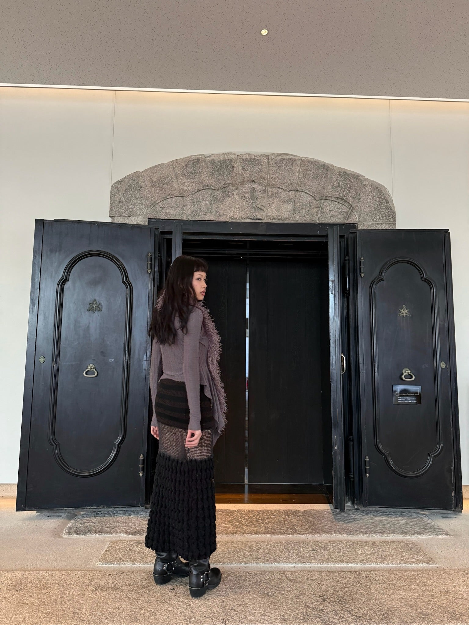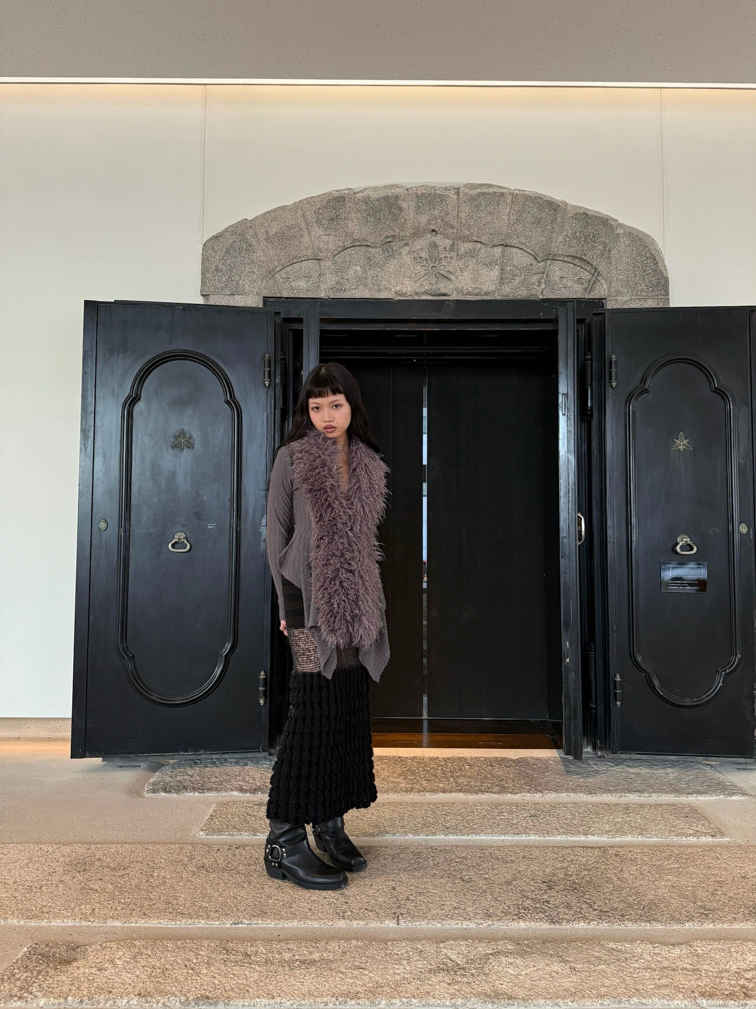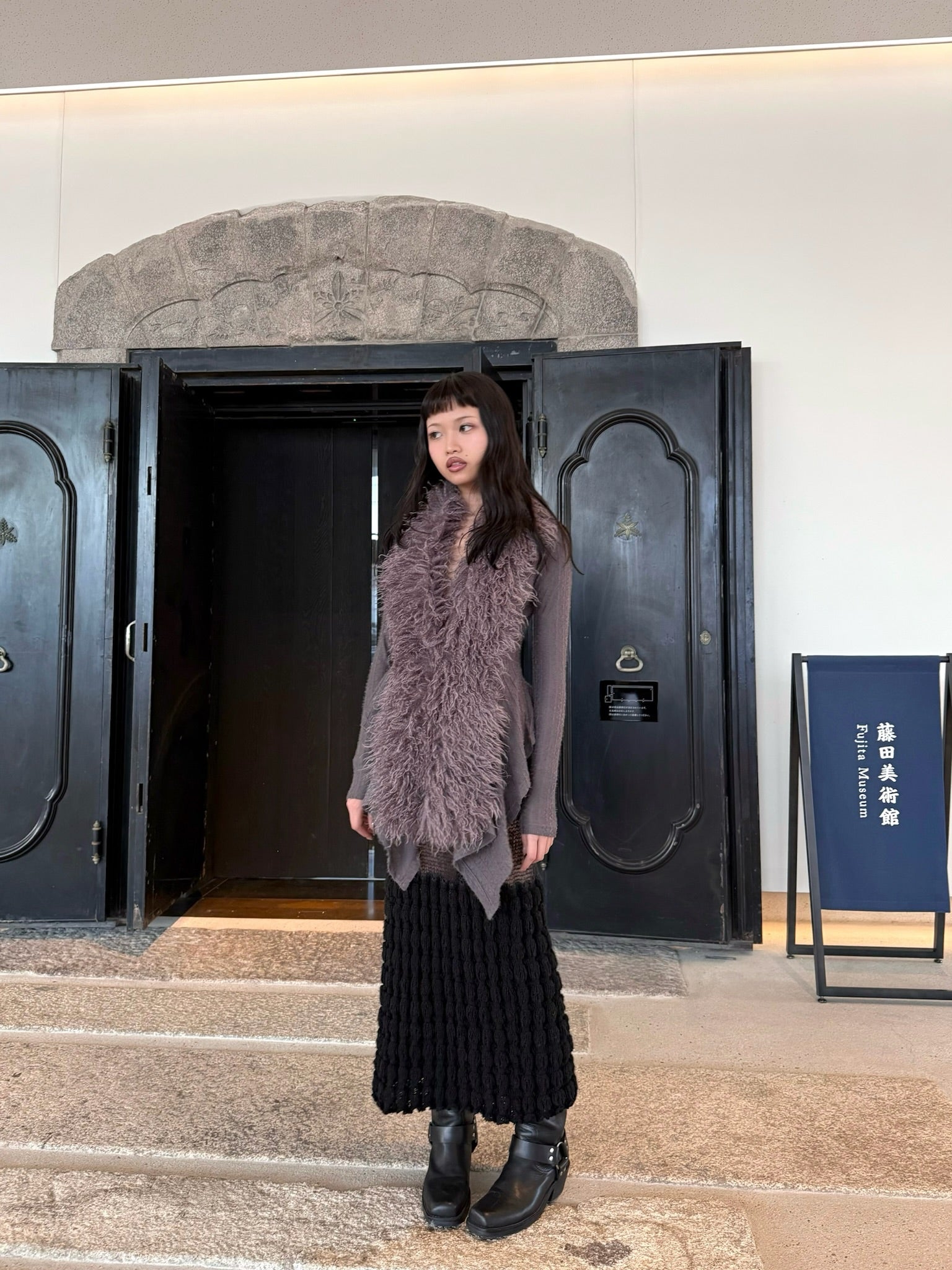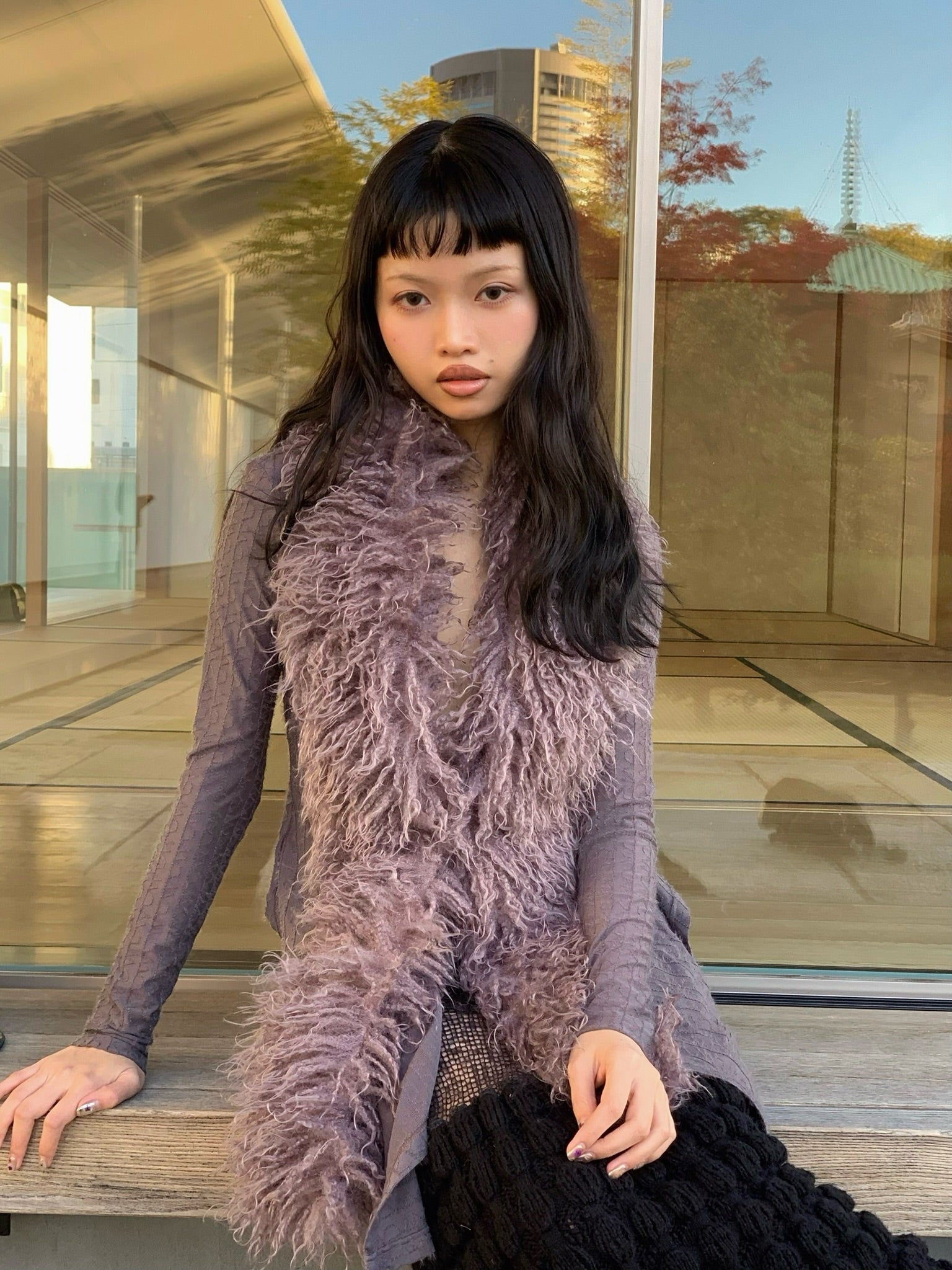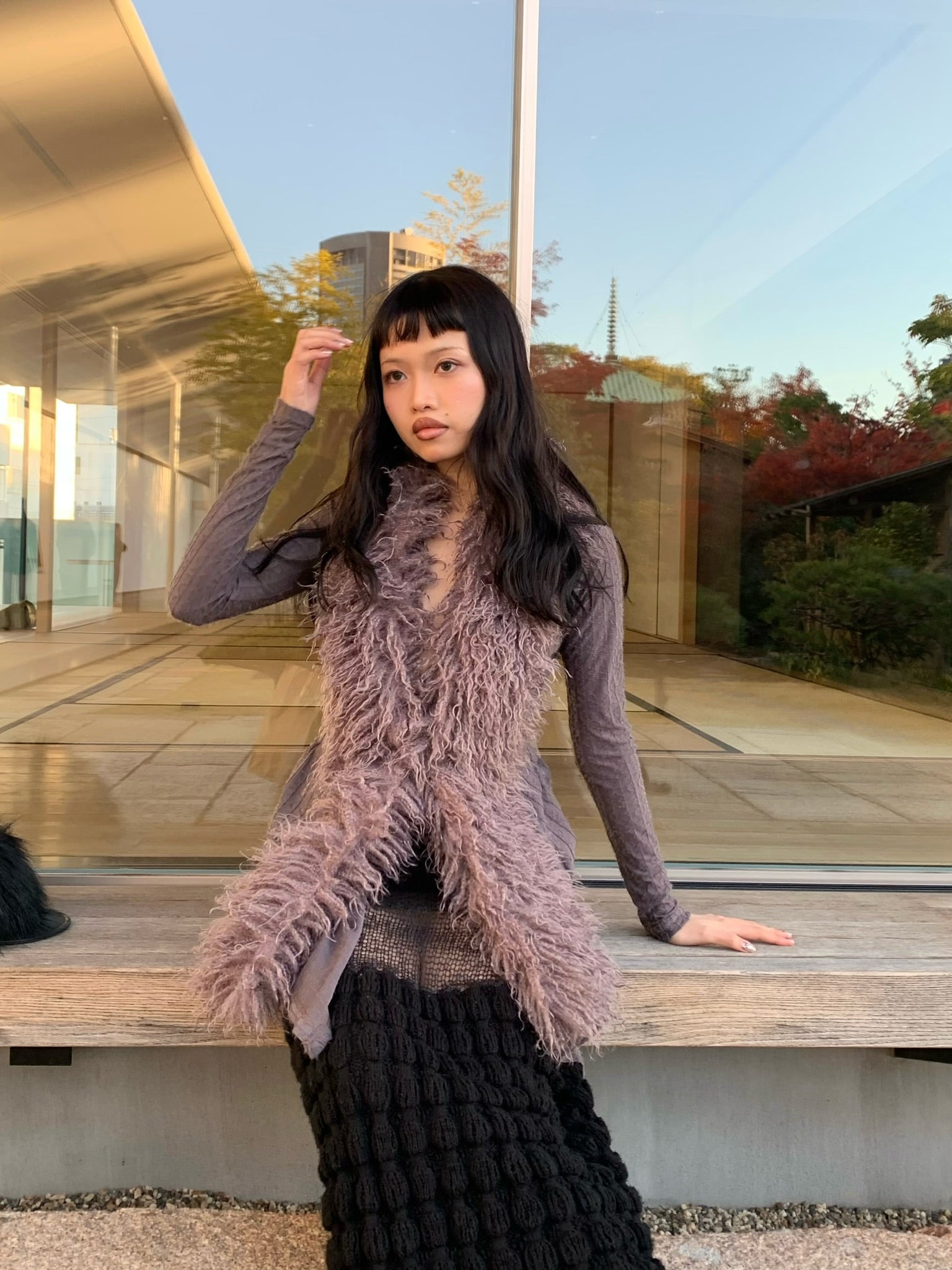 Purple grey fur( long at the front and short at the back ) slimming knit long sleeve cardigan/jacket/top